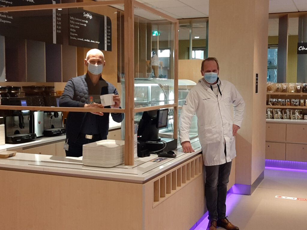 “Dat doen ze op een erg positieve manier. Alles is zó ingericht dan men al binnen een dag kan afschalen of opschalen. Het restaurant is momenteel ingericht als take away-locatie. Voor personeel zijn verschillende ruimtes ingericht om te kunnen pauzeren. In de eerste coronagolf was er zelfs een 24-uursservice voor medewerkers, omdat er zoveel van ze werd gevraagd. In de tweede golf is er gekozen voor een bestelservice. Medewerkers kunnen dagelijks een maaltijd bestellen. Deze wordt op de afdeling in de koelkast geplaatst. Voor IC-medewerkers is er dagelijks een soepservice.”